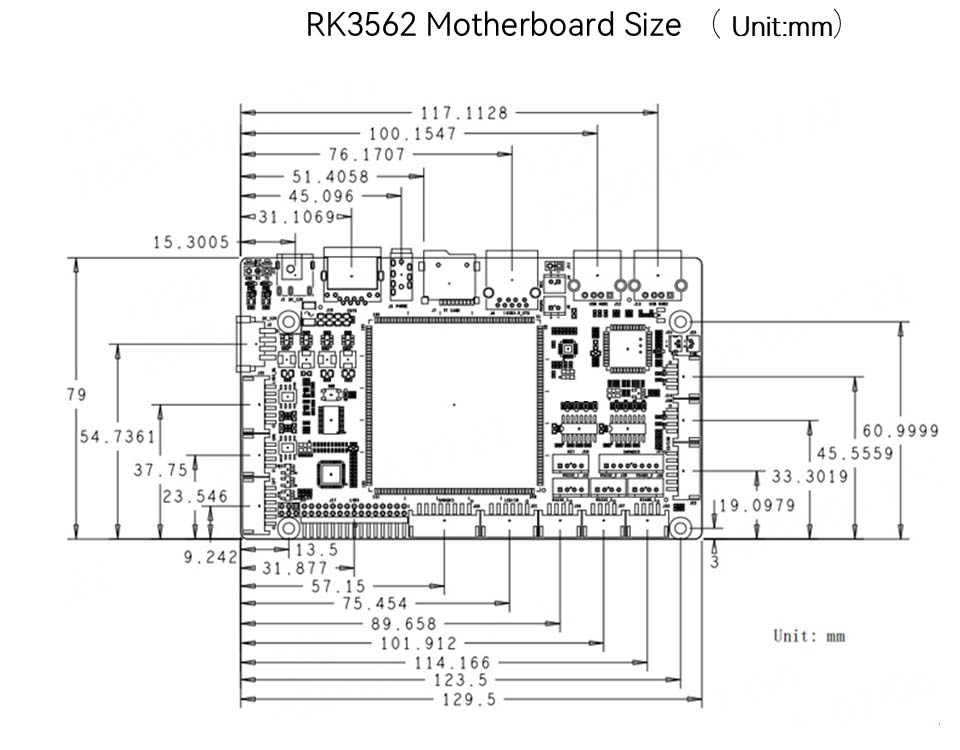 Model: RK3562/RK3562JCPU: čtyřjádrový Cortex-A53, hlavní frekvence do 2,0 GHZGPU: Mali-G52NPU: 1Tops Computing Power (průmyslový stupeň RK3562J bez NPU)